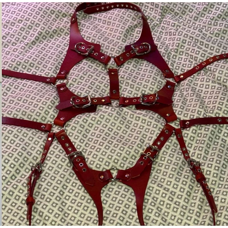 The product female full body harness is worn on the whole body, has adjustable straps on the neck, above and below the bust and in the hips, which provides the possibility of a "perfect" fit for your parameters. Suitable for girls with any type of figure, makes it sexy and feminine.
